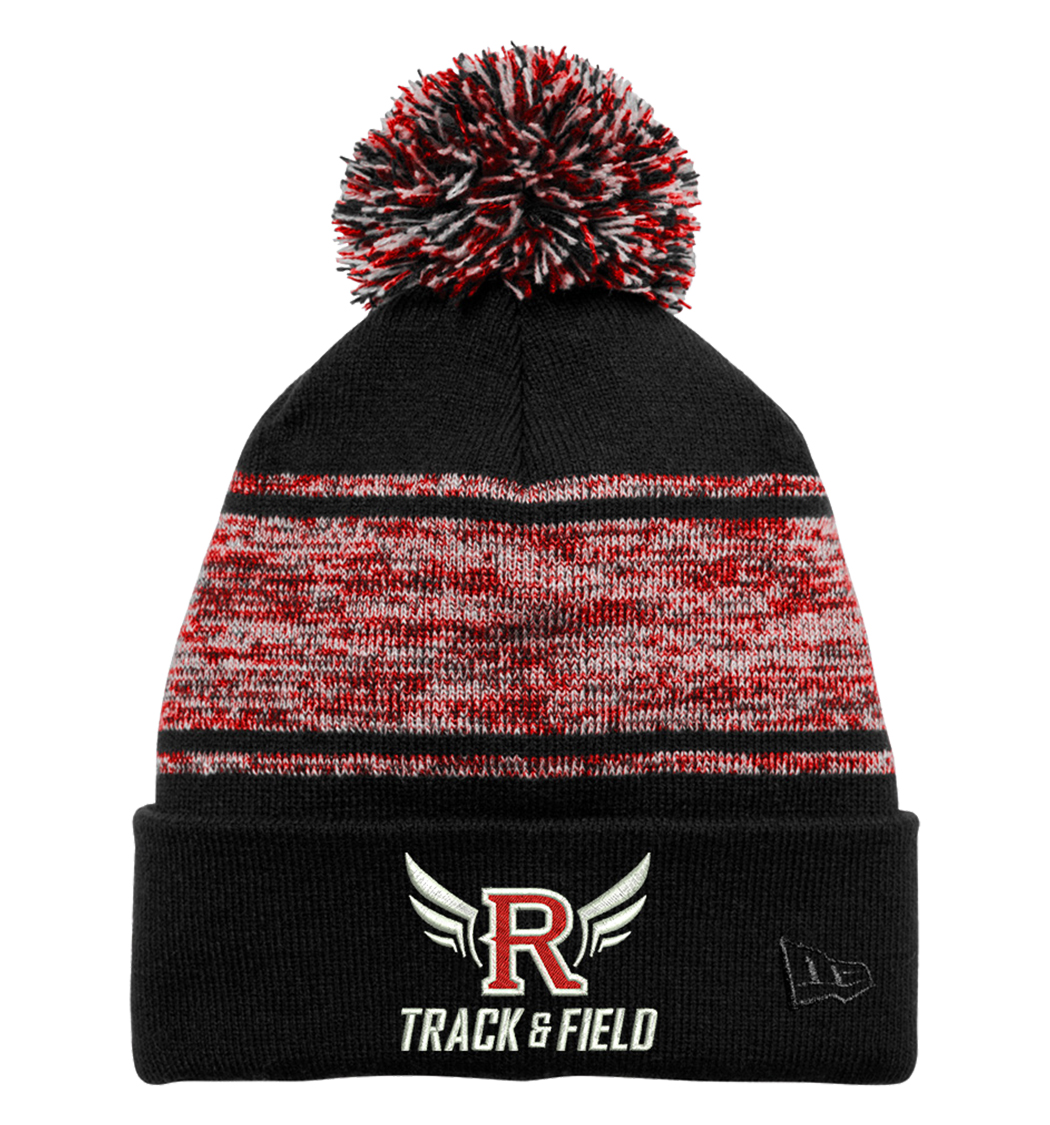 Rydell Track Field New Era Knit Chilled Pom Beanie-Black/Scarlet